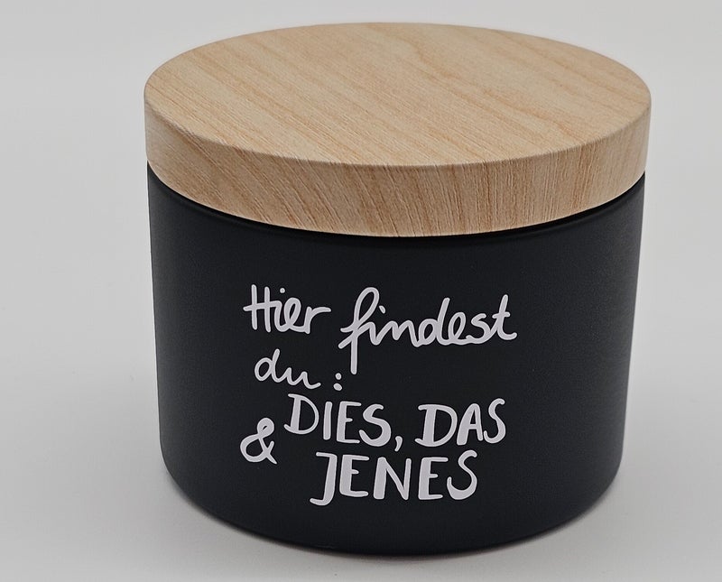 Gönnen Sie sich diese charmante Aufbewahrungslösung und bringen Sie mit der Aufschrift „Hier findest du dies, das und jenes“ einen Hauch von Humor und Ordnung in Ihr Leben!