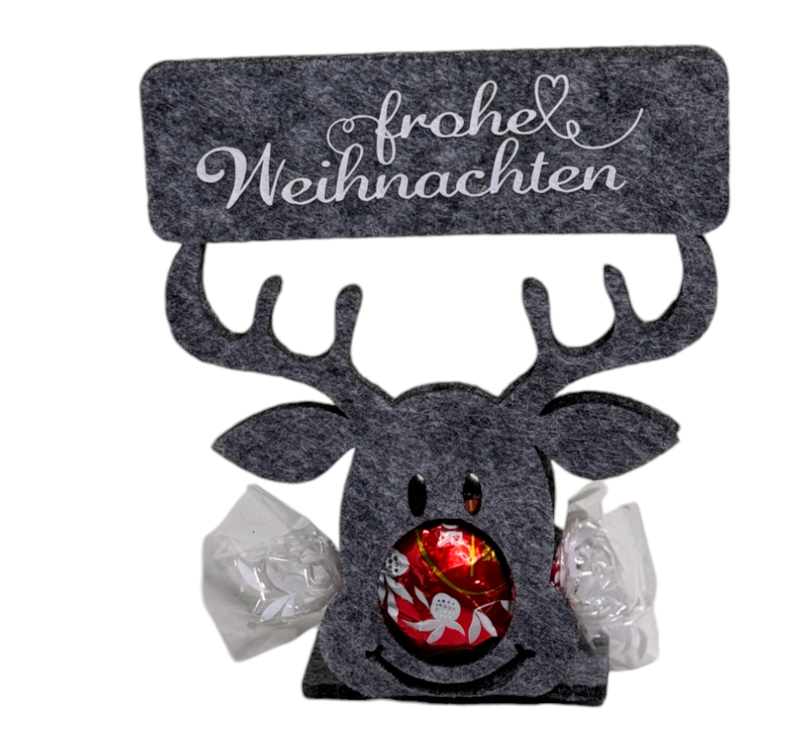 Ob als hübsches Weihnachtsgeschenk oder als persönliche Deko – das Filzrentier mit Schokoladenkugel ist eine süße Kleinigkeit, die große Freude bereitet!