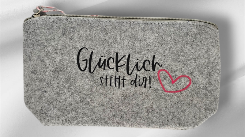 Mit diesem Filzkulturbeutel „Glücklich steht dir“ trägst du das Glück immer bei dir – und hast gleichzeitig einen praktischen und stilvollen Begleiter für deinen Alltag.