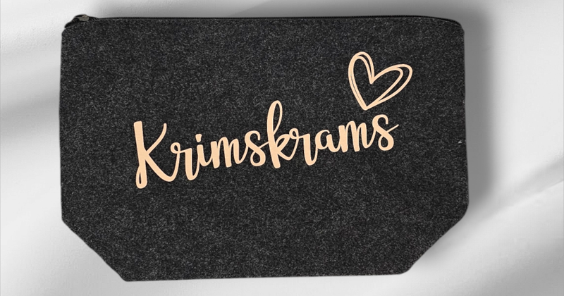 Mit der Aufschrift „Krimskrams“ ist dieser Kulturbeutel der ideale Ort, um all die kleinen Dinge zu verstauen, die man immer bei sich hat, aber nie so richtig einen Platz finden. Ob Schlüssel, Münzen oder Lippenbalsam – hier wird alles ordentlich aufbewahrt!