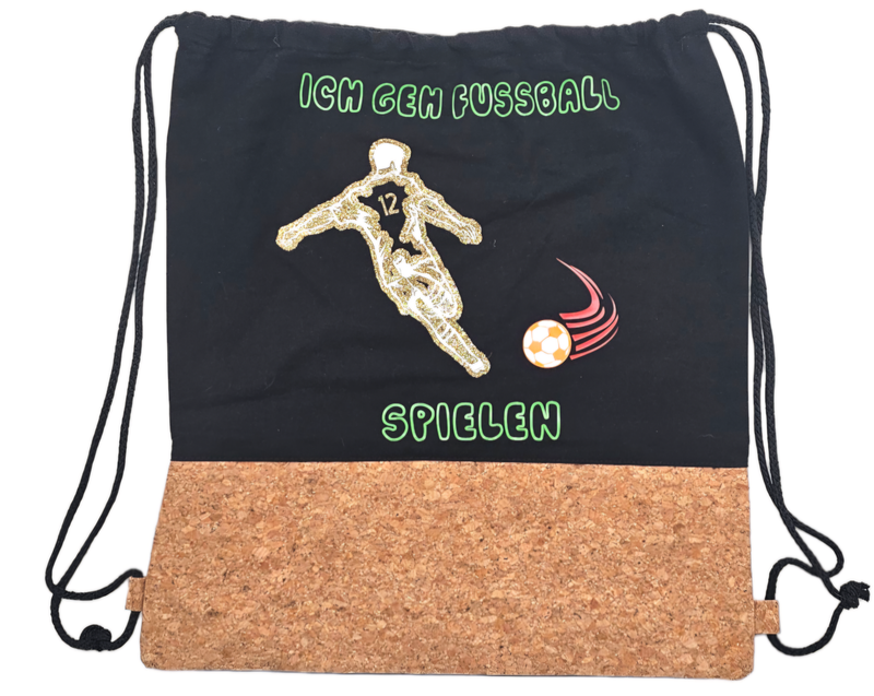 - Beutel mit Kordelzug und Besatz aus Kork.