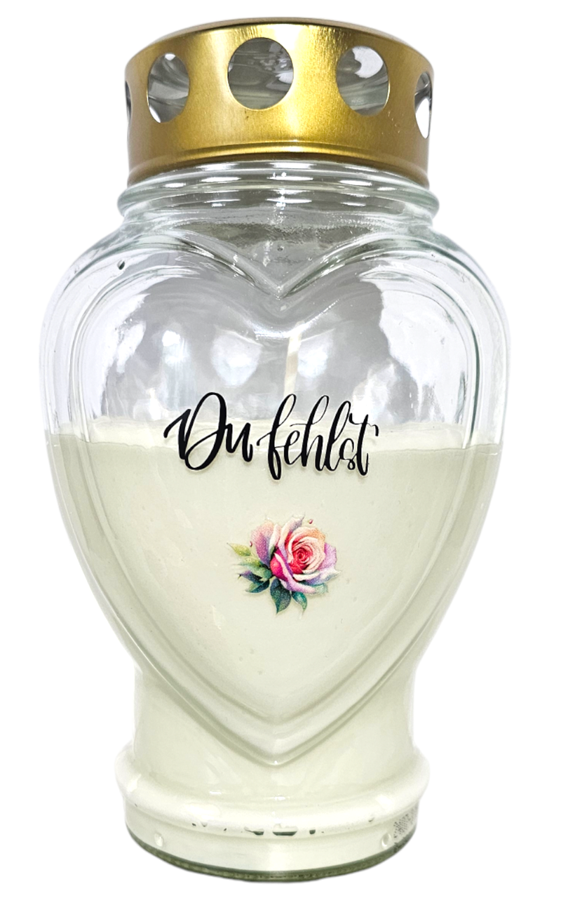 Individuell gestaltbare Grabkerze – Ein Licht der Erinnerung mit persönlichen Worten und Motiv