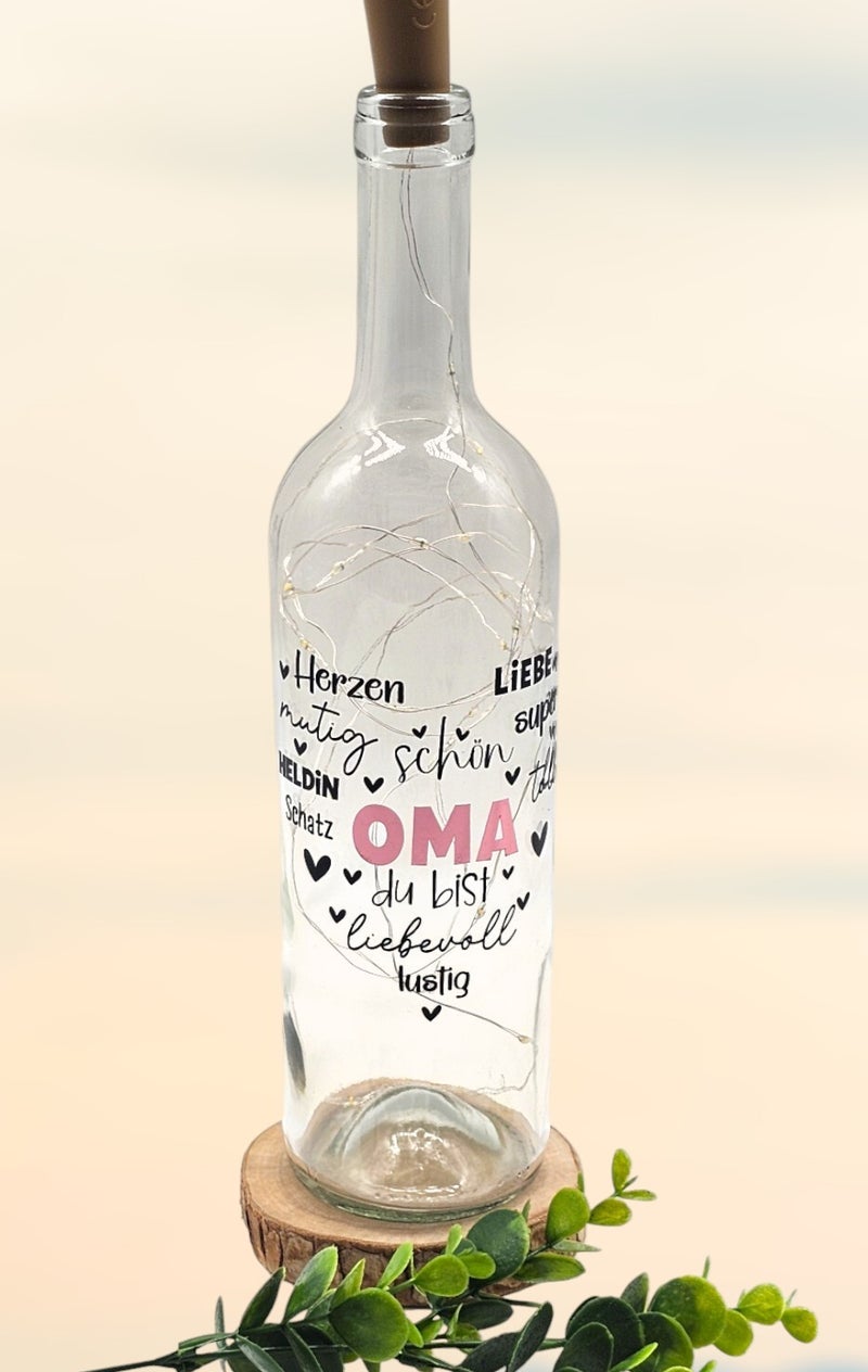 - Sanfte LED-Beleuchtung: Die warmen Lichter im Inneren der Flasche schaffen eine gemütliche Atmosphäre und setzen Ihre Worte perfekt in Szene.